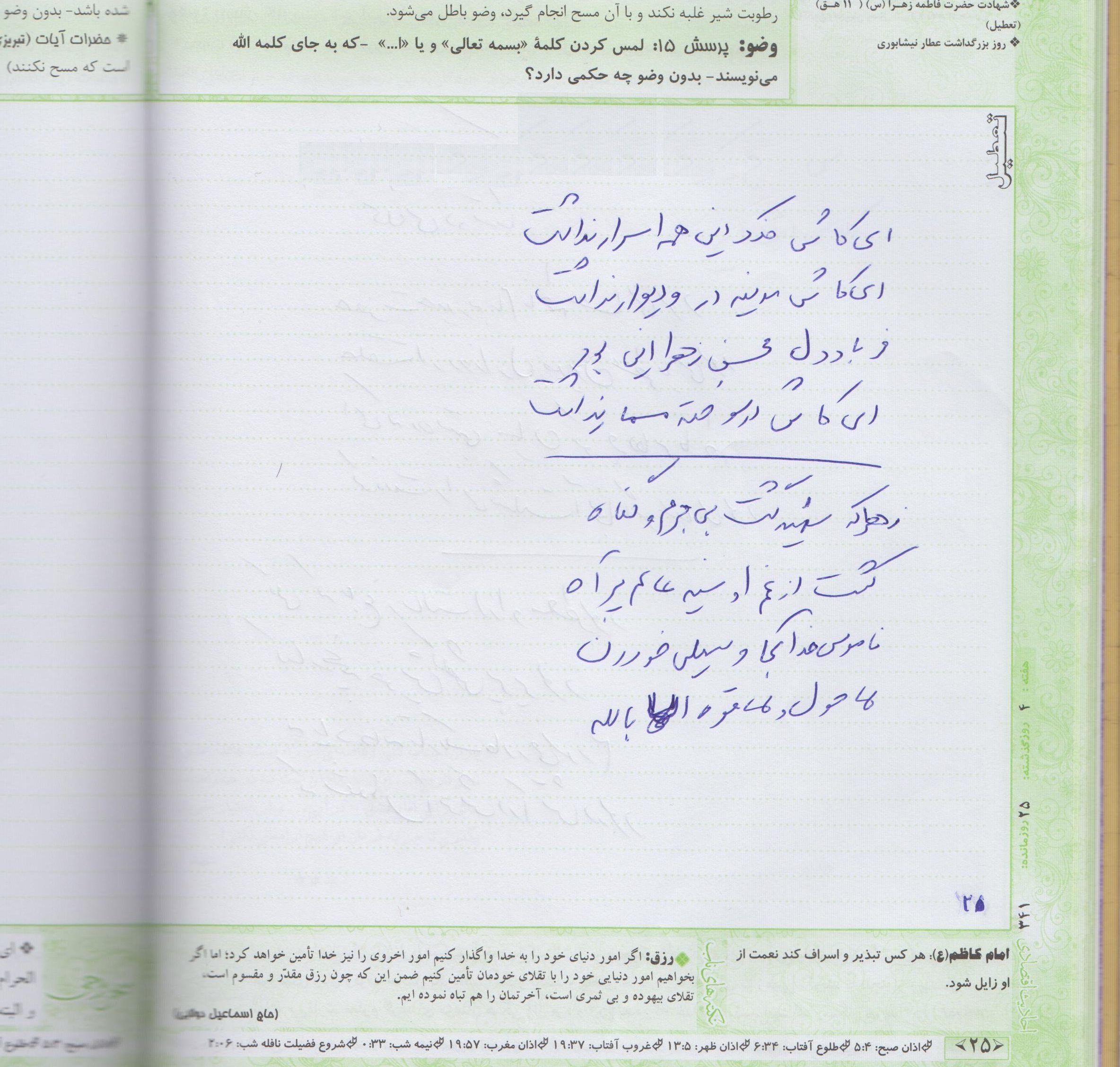 "من از خداوند شهادت رو زمانی که در مقابل اسرائیل یعنی در مقابل دشمن حقیقی ما، صهیونست ها، می خوایم بجنگیم، اونجا ان شاءالله..